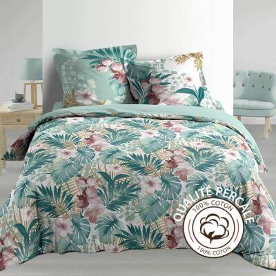 Housse de couette - 260 x 240 cm + taies - percale 78 fils - Florale et colibri