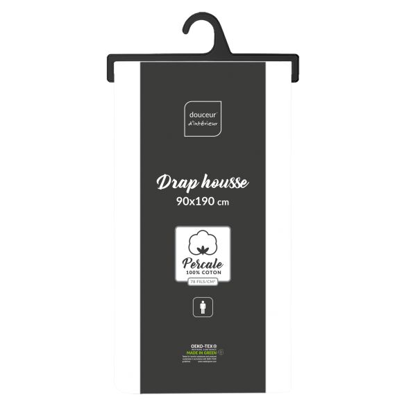 Dimensions : 90x190 cm avec bonnet de 30 cm Composition : 100% percale de coton 78 fils/cm2