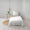 Grâce à ses teintes neutres et son motif graphique délicat, cette housse de couette se marie aisément avec du mobilier en bois clair, des accessoires en fibres naturelles ou des éléments décoratifs plus contemporains. Elle constitue une base idéale pour créer une atmosphère douce, lumineuse et équilibrée.
